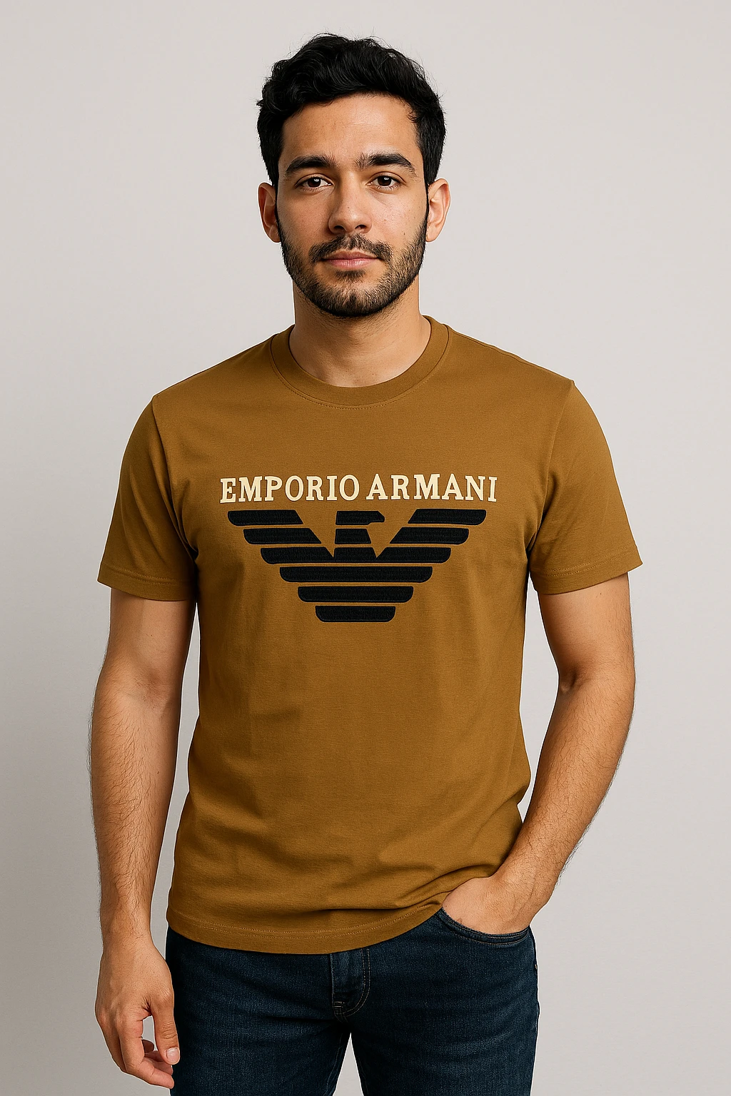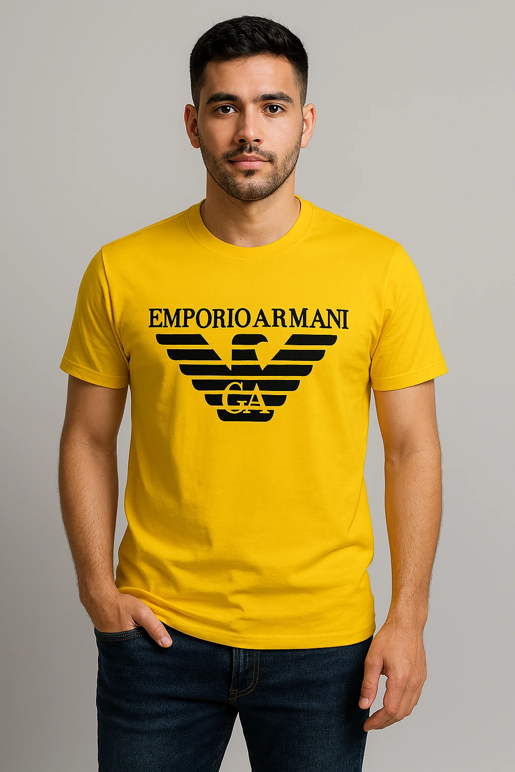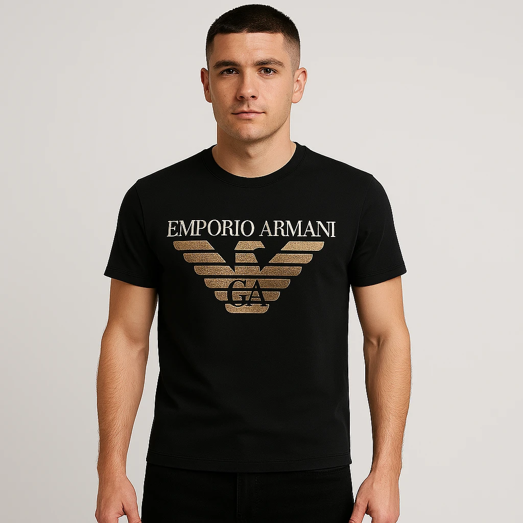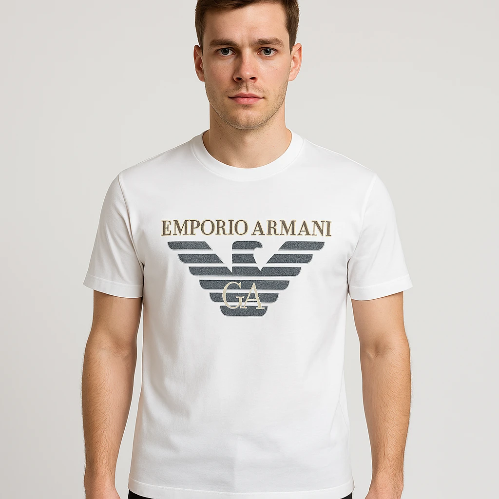 Elevate your everyday look with the Classic White Armani Print T-Shirt. Made from soft, breathable cotton, this tee delivers comfort with a sleek, modern edge. The front showcases the instantly recognizable Emporio Armani eagle emblem with “GA” detailing, making it a wardrobe essential for those who value luxury and simplicity. Perfect to pair with denim, joggers, or even layered under jackets, this t-shirt transitions effortlessly from casual to classy.