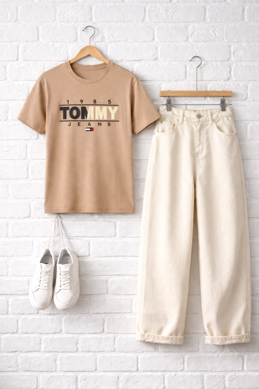 Upgrade your wardrobe with this premium beige Tommy Jeans style t-shirt. It delivers a clean and modern look. The bold 1985 print adds a stylish touch. You can wear it daily with ease.