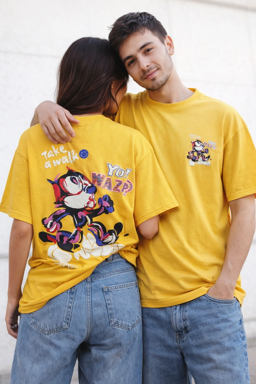 Are you looking for the ultimate matching streetwear aesthetic? The “Yo! Wazp” T-Shirt provides the perfect answer. Grab one for yourself and your partner to flex a coordinated couple’s fit. We engineered the unisex design to flatter every body type. Because the oversized aesthetic translates perfectly across genders, this T-Shirt has become a go-to for matching outfits. Importantly, it never feels cheesy or forced. It represents unified drip. When you throw these on together and hit the city, the aesthetic will completely elevate your shared style.