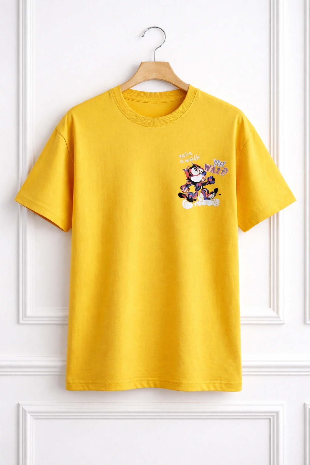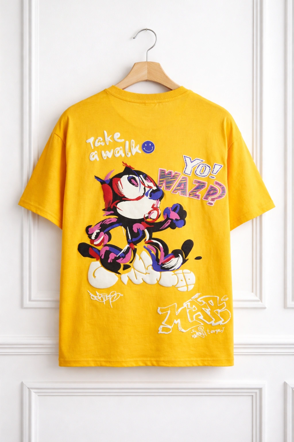To ensure your “Yo! Wazp” T-Shirt remains the standout piece in your wardrobe, follow these simple care instructions: